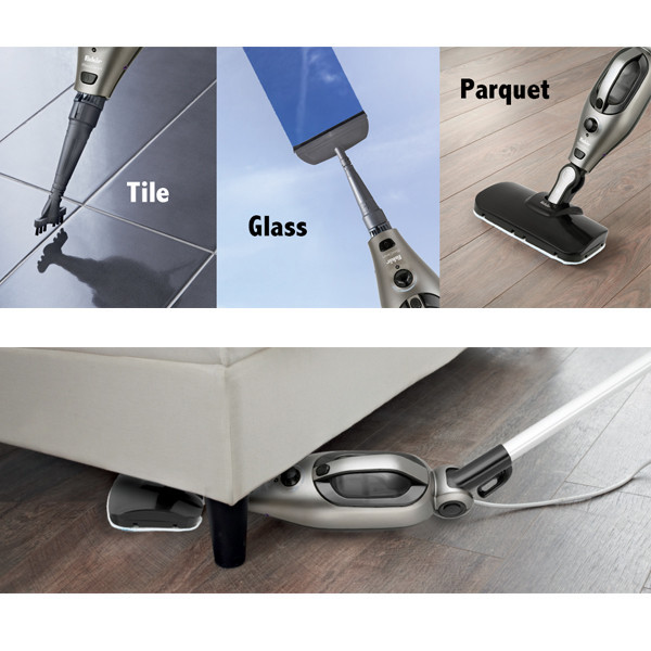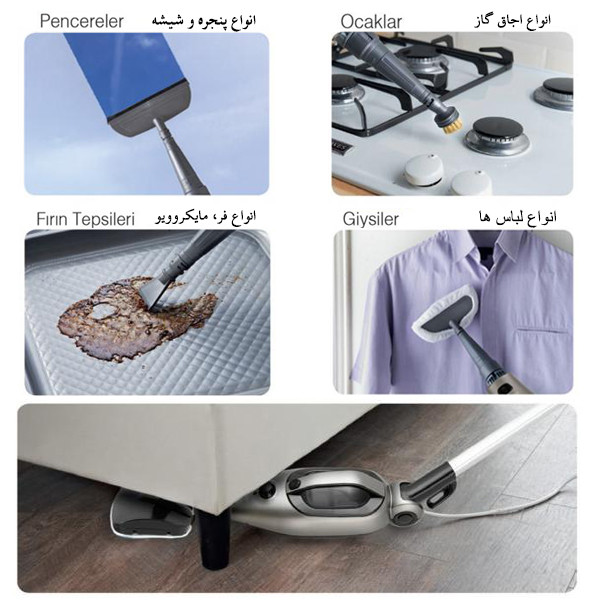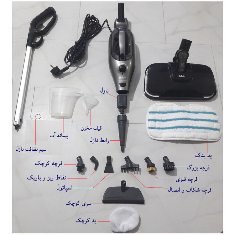 بخارشوی ایستاده فکر 10 در 1 مدل ماکسی کلین FAKIR - MAXI CLEAN به صورت ملایم و اکولوژیکی از لوازم کاربردی و پراستفاده برای نظافت کلیه سطوح هست که با عملکرد بخار داغ و قوی خود به خوبی سطوح مختلف و گوناگون را تمیز و ضدعفونی میکند و با استفاده از بخار داغ سطوح شما را با قدرت بسیار زیاد تمیز خواهد کرد. بخار شوی ماکسی کلین آلودگی و چربی موجود در کلیه سطوح را به طور موثر و بدون مواد شیمیایی پاکسازی نموده و همچنین 99٪ باکتری ها و عوامل بیماری زای موجود در این سطوح را از بین می برد. کمپانی فکر آلمان با فناوری بروز محصولاتی با نیاز روز به مشتریان خود ارائه می کند تا رضایت مشتریان خود را جلب نماید. به کمک طراحی ارگونومیک مولتی فلکس ، مفاصل چرخان ، کفی بخارشوی با چرخش 180 درجهای و سیستم پاک کنندگی قوی می توانید به راحتی به مکان های با دسترسی دشوار ( زیر مبل و گوشه ها، درزها و شکاف های تنگ و باریک) و سخت صعب العبور برسید و نظافت خود را انجام دهید. این دستگاه وسیلهای کاربردی برای پاککردن سطوح مختلف نظیر سنگ، پارکت، فرش، موکت، اپوکسی، لمینت، چوب، سرامیک، شیشه، دیوار، سرویس های بهداشتی، توالت فرنگی، اجاق گاز، فر، مایکروویو و سینی ها آنها و سایر سطوح بسیار مناسب هستند که با بخار داغ و قوی می تواند تمیز نماید. با توجه به وسایل جانبی و سری های مختلف حتی مکان های غیر قابل دسترس را می تواند به راحتی پاکسازی کند. بخارشوی مکسی کلین با وجود مخزن آب بزرگ به حجم 350 میلی لیتر و توان خروجی 1300 وات تجربه ای تمیز کردن فوق العاده و همچنین با وجود فیلتر از بین برنده سختی آب و قابل جابجایی از کالسی (Calcium) شدن بخار شستشو جلوگیری کرده و طول عمر طولانی دستگاه را تضمین می نماید. با وجود طول سیم زیاد و شعاع عملکرد 6 متری فضای حرکت زیادی برای شما فراهم می نماید و هیچ گونه آزار دهندی برای جابه جایی پریز ها ندارد. دستگاه پس از 30 ثانیه شروع به گرم شدن شده و زمین شوی آماده استفاده می شود و با بخار ایجاد شده با لکه های سمج شروع به مبارزه می کند. این بخارشوی شامل یک نازل پنجره/ کف، یک نازل شکاف، یک نازل جت، یک برس کوچک و بزرگ، اتصال کف، یک بالشتک کف،یک اتصال کفگیر،یک اتصال لباس، 2 پارچه میکرو فایبر برای کف، یک قاب کشویی و یک پیمانه و قیف می باشد.