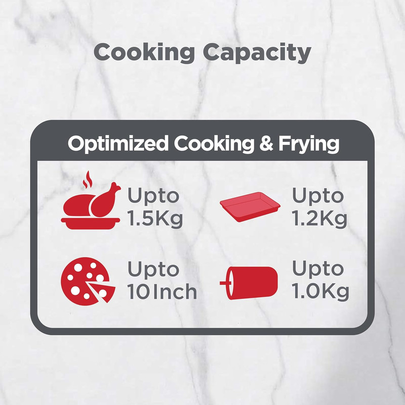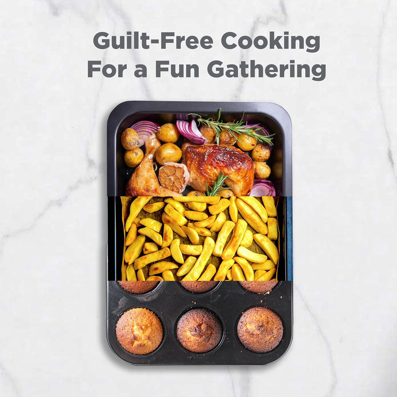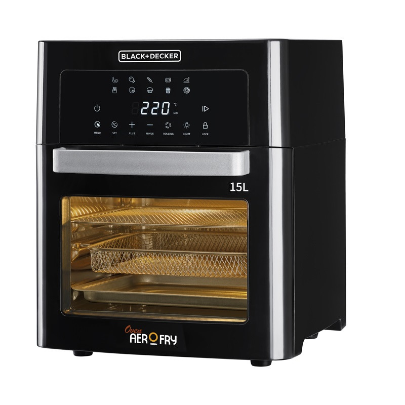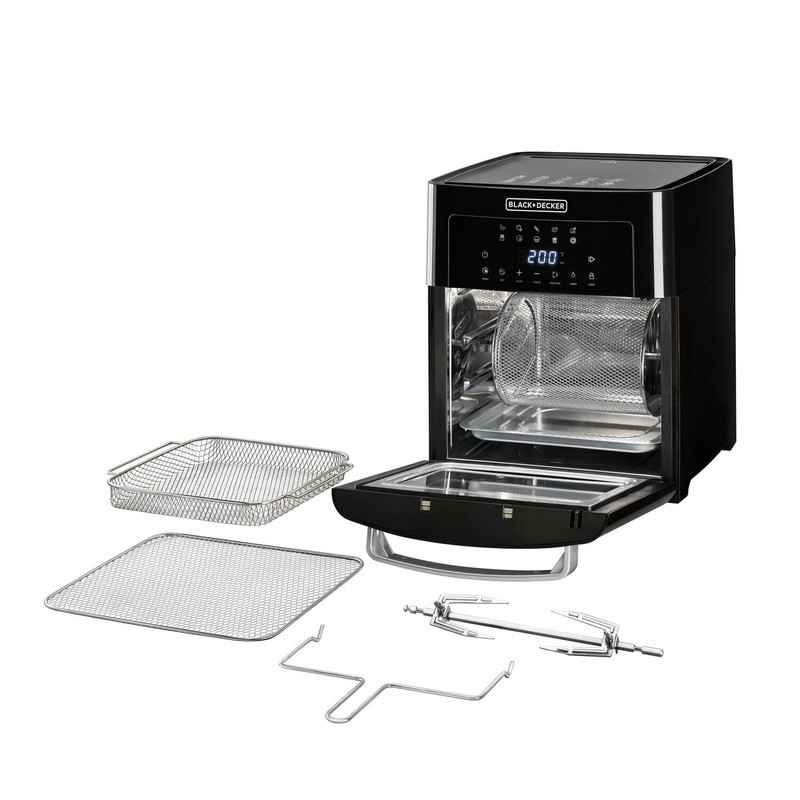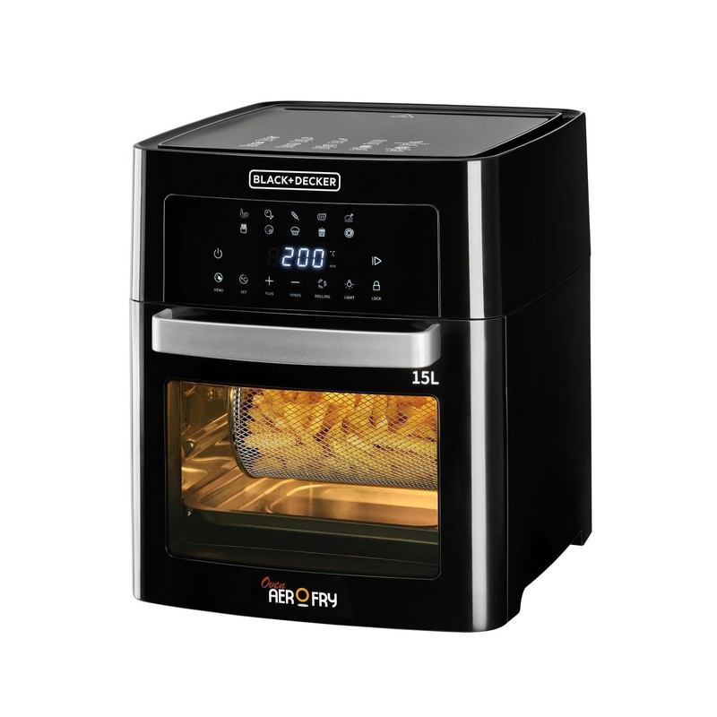 سرخ کن بلک اند دکر مدل AOF150-B5 با برخورداری از ظرفیت 15 لیتر، برای تهیه وعده های غذایی بزرگ و میهمانی های خانوادگی بسیار ایده آل می باشد. این دستگاه دارای 10 منوی از پیش تعیین شده است که موجب آماده سازی سریع غذاها می شود و برای انجام پخت، تنها کافیست از روی صفحه نمایش لمسی، گزینه مورد نظر را انتخاب نمود تا عملکرد پخت به صورت اتوماتیک آغاز گردد. دمای قابل تنظیم (80-220 درجه سانتیگراد) و تایمر قابل تنظیم از دیگر قابلیت های کاربرپسند Black and Decker AOF150 محسوب می گردد. از یک تجربه آشپزی با فناوری بدون دود لذت ببرید و آشپزخانه خود را تمیز نگه دارید! فناوری همرفت سریع هوا، غذای ترد را با روغن کمتر ارائه می دهد و درب شیشه ای دو جداره به حفظ گرما برای پخت بهینه کمک شایانی می کند. پنجره دید شفاف و نور داخلی، امکان نظارت بر مراحل پخت غذاها را میسر می سازند. خاموشی خودکار، قفل ایمنی، و دستگیره های لمسی خنک، سهولت و ایمنی را تضمین می کنند. همچنین قطعات برای سهولت بیشتر قابل شستشو در ماشین ظرفشویی می باشند.