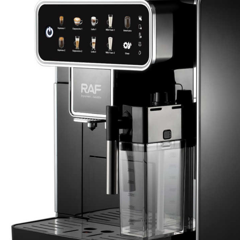 اسپرسوساز تمام اتومات راف محصولی زیبا، درجه یک و همه چیز تمام از برند راف. این اسپرسو ساز هوشمند، تمام انتظارات شما را از یک دستگاه اسپرسو ساز براورده میکند. این اسپرسو ساز با توان 1350 وات و یک آب پمپ ایتالیایی 15 بار و به کمک سیستم هوش مصنوعی، قادر است که انواع قهوهها را فقط با یک کلیک آماده کند. این اسپرسو ساز دارای آسیاب سر خود است که به کمک آن میتوان دانههای قهوه را در سه سایز ریز، متوسط و درشت آسیاب کنید و در همان لحظه قهوه تازه و خوش طعم را نوش جان کنید. به کمک این دستگاه، شما میتوانید تنها با یک کلیک انواع قهوه ها یک کاپ و دو کاپ از جمله اسپرسو، کاپوچینو، لاته، امریکنو و فوم شیر را تهیه کنید. حجم مخزن آب این دستگاه 1.5 لیتر است که با طراحی بی نظیر خود، ظاهری بسیار زیبا و مدرن به این دستگاه داده است. از دیگر ویژگیهای این دستگاه میتوان به مخزن تفاله آن اشاره کرد که بعد از آسیاب و استفاده از دستگاه، تفالههای قهوه در آن ذخیره میشوند و به راحتی میتوان آن را تمیز کرد. یکی دیگر از ویژگیهای مثبت این دستگاه، سیستم تمیز کردن خودکار است که با یک کلیک، شروع به تمیز کردن مجاری دستگاه میکند. در مجموع اگر به دنبال یک دستگاه اسپرسو ساز تمام اتومات هستید که انواع قهوهها را با دقت فراوان تنها با یک کلیک برای شما سرو کند، اسپرسوساز تمام اتومات راف میتواند گزینهای عالی برای شما باشد.