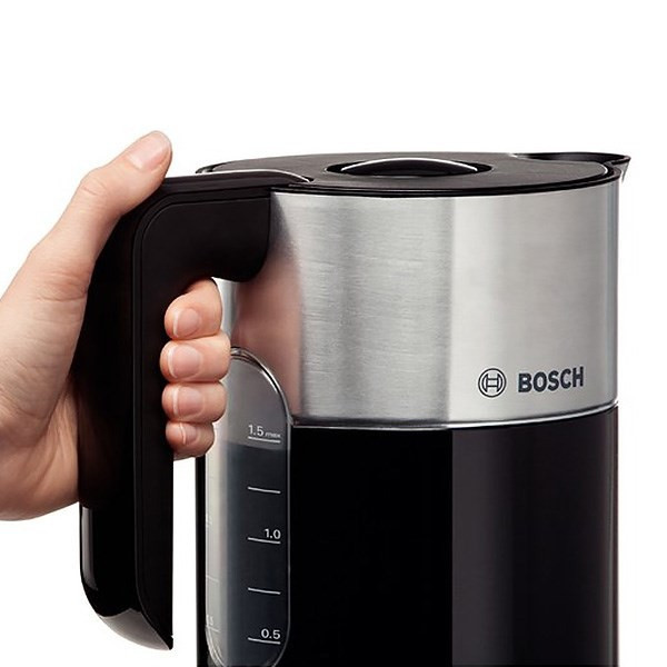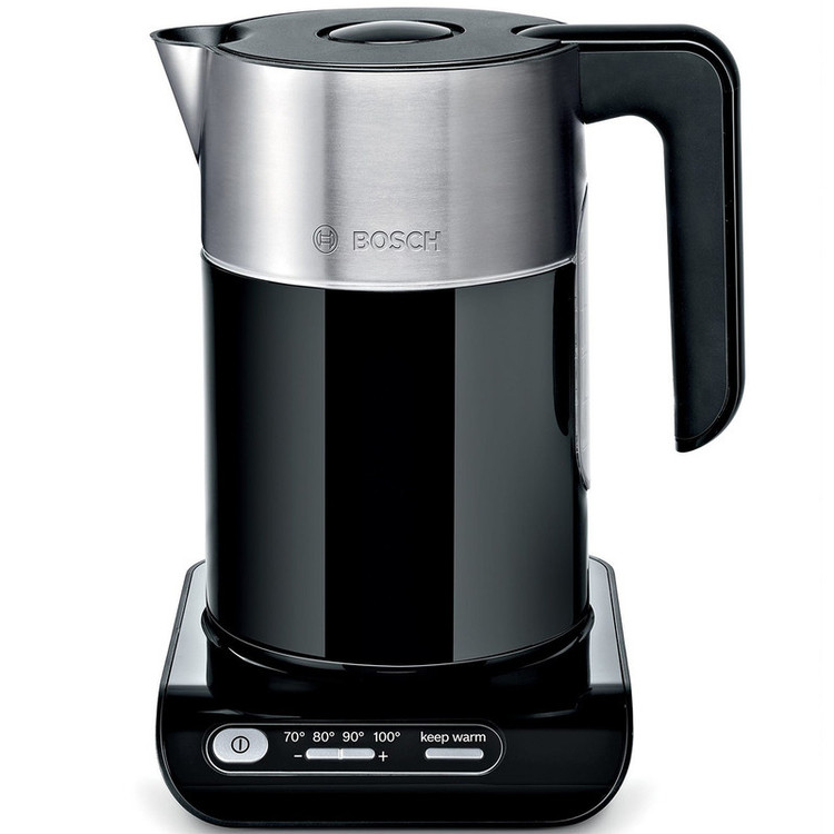 کتری برقی بوش مدل TWK8613 قابلیتهای زیادی دارد و از طراحی ویژهای بهره میبرد. این دستگاه با ترکیب استیل و پلاستیک زیبایی خاصی دارد و رنگ مشکی آن زیبایی بیشتری به محیط میبخشد. کتری برقی بوش مدل TWK8613 دو قسمت کلی دارد. پایه جایی است که تمام تنظیمات دستگاه از روی آن قابل انتخاب است. از این قسمت دستگاه روشن و خاموش میشود یا در حالت گرم نگهدار قرار میگیرد. با استفاده از دکمههای مثبت و منفی میتوان دمای آب را تعیین کرد تا برای مصارف خاص و همچنین افزایش راندمان دستگاه قابل انتخاب باشد. کتری روی این پایه قرار میگیرد و محدودیت کابل برق برای خود کتری وجود ندارد، بهاینترتیب میتواند چرخش 360 درجه داشته باشد و افراد چپدست هم بهراحتی از آن استفاده کنند. دسته کتری طراحی سادهای دارد و خوشدست است. در کتری با یک دکمه روی آن باز و بسته میشود. داخل کتری و در قسمت دهانه، یک صافی قرارگرفته تا جرم داخل آب جوشیده وارد لیوان و نوشیدنی نشود. زیر دسته کتری نشانگر مدرج وجود دارد تا میزان آب داخل کتری را نشان دهد. بوش از تولید و عرضهکنندگان باسابقه لوازمخانگی برقی است که محصولات باکیفیت و کارآمدی وارد بازار کرده است.