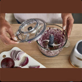 خردکن کنوود مدل CHP62.400SI خردکنی عالی در آشپزخانه شماست و به لطف موتور 500 واتی خود به راحتی کارهای کوچک را انجام می دهد. به لطف عملکرد بصری آن با یک دست، می توانید با فشار ساده یک دکمه سرعت را در دو سطح کنترل کنید. یک سیستم 4 تیغه برای خرد کردن تمام مواد مورد نیاز برای غذاهای شما، از ادویه تا میوه های خشک، برای اطمینان از پردازش یکنواخت. بادوام، سبک وزن و مقاوم در برابر لکه است که تمیز کردن را راحت می کند. ظرف کار شیشه ای با کیفیت بالا با حجم کاری 0.6 لیتر نیز برای مقادیر بیشتر ایده آل است و به لطف اتصال Dripper Pro، همچنین اجازه می دهد تا مایعات در طول پردازش اضافه شود.کفی بدون لغزش برای ثابت نگه داشتن کاسه روی میز کار، حلقه کابل برای نگهداری منظم کاسه پس از استفاده و مینی باکس و سیستم ایمنی دارا می باشد.این خردکن را می توان از هم جدا کرد تا به راحتی تمیز شود. کاسه را می توان پس از تهیه سس های خوش طعم، سالاد و غیره در ماشین ظرفشویی قرار داد.