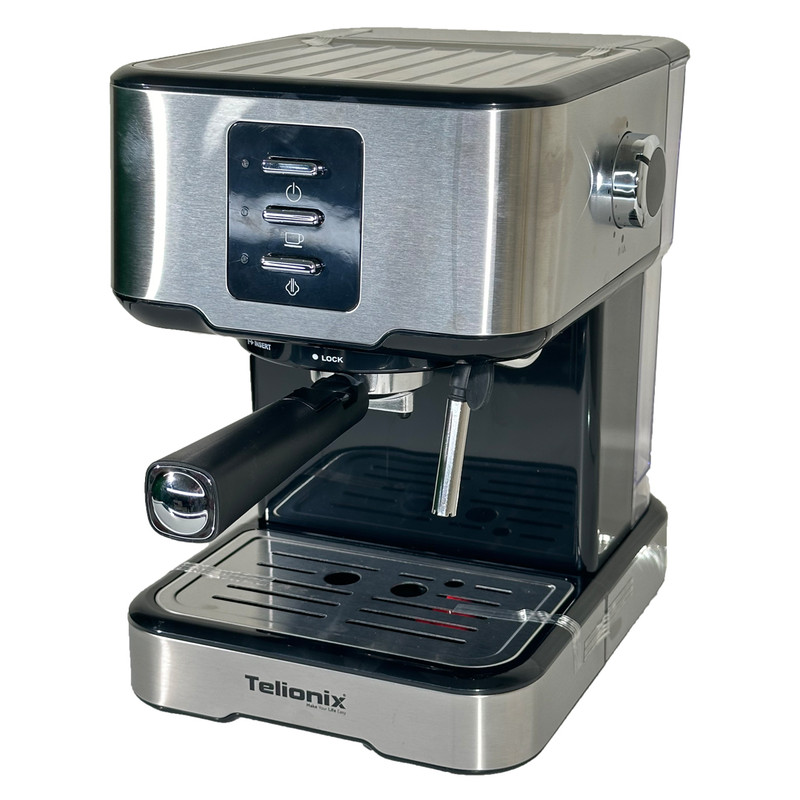 ز جمله ویژگیهای این محصول داشتن موتور با فشار 20 بار و ظرفیت 1200 وات قدرتمند ایتالیایی میباشد که باعث شده قهوه خروجی دارای کرمای با غلظت عالی باشد. و همچنین دارای بخار خروجی فوق العاده قوی میباشد اسپرسوساز telionix مدل 5112 مجهز به پیچ تنظیم بخار میباشد که امکان تهیه فوم شیر با غلظت های متفاوت را با تنظیم بخار خروجی فراهم می آورد. اسپرسوساز تلیونکیس دارای صفحه گرم نگهداره فنجان است که به شما کمک میکند تعداد بیشتری فنجان قهوه را پیش گرم کنید و از نوشیدن یک فنجان اسپرسو خوب لذت ببرید. دستگاه دارای دو فیلتر تک اسکوپ و دو اسکوپ میباشد و پرتا فیلتر آن به نحوی طراحی و ساخته شده است که با وزن مناسب، متریال مرغوب، عصاره گیری کامل، قهوه اسپرسوی پرخامه و غلیظی را به شما تحویل میدهد. دستگاه اسپرسوساز telionix مدل 5112 مناسب برای مصارف خانگی ، محل کار ، سوپرمارکت ها، کافی شاپ های کوچک و مکانهای مشابه است.مخزن دستگاه با گنجایش 1٫5 لیتر قابلیت جدا شدن دارد. اقلام همراه این دستگاه سبد تک و دبل ، تمپر و پیمانه پلاستیکی ، پرتافیلتر و دفترچه راهنما میباشد. جهت داشتن قهوه اسپرسوی پرخامه و با کیفیت حتما از قهوه با درجه آسیاب متوسط استفاده کنید.