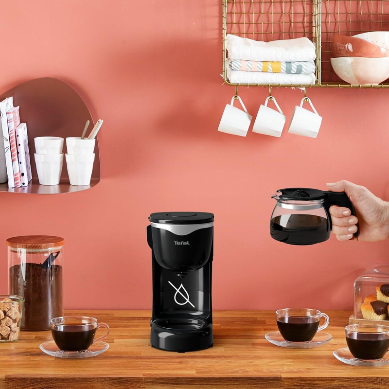 یکی دیگر از قابلیتهای کاربردی این قهوهساز، صفحهی گرم نگهدارنده است. پس از پایان فرآیند تهیه قهوه، این صفحه قوری را گرم نگه میدارد تا قهوه برای مدت زمان بیشتری داغ بماند. این ویژگی بهویژه برای کسانی که دوست دارند قهوهشان را به تدریج و در طول روز مصرف کنند، بسیار مفید است.قهوهساز تفال مدل CM340827 دارای ظرفیت مناسب برای تهیه 10 الی 15 فنجان قهوه در هر بار استفاده است. این مقدار برای استفاده روزانه یک خانواده یا حتی در محیطهای کاری کوچک بسیار مناسب است. توان مصرفی 600 وات این دستگاه نیز به گونهای است که مصرف انرژی بهینهای دارد و در عین حال قدرت کافی برای تهیه سریع قهوه را فراهم میکند.
