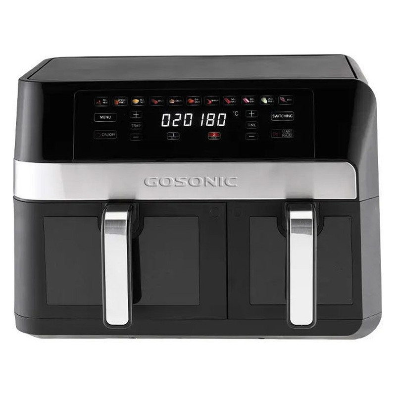 از جدیدترین سرخ کن های 2 قلو برند گوسونیک ، سرخ کن دوقلو گوسونیک مدل GAF-710 است. این سرخ کن با طراحی جدید خود نسبت به مدل های قبلی تفاوت های زیادی داشته است. جنس داخلی بدنه سرخ کن دارای یک روکش فلزی شده است که می تواند در کیفیت و عمر مفید بدنه تاثیر گذار باشد. ظرفیت در نظر گرفته شده برای این سرخ کن دوقلو افزایش داشته که این دستگاه را تبدیل به بزرگترین سرخ کن بدون روغن گوسونیک نموده است. 4 لیتر برای سبد سمت راست و 6 لیتر برای سرخ کن سبد چپ ، مجموع این ظرفیت را به 10 لیتر رسانده است. هر دو این سبدها قابلیت جداسازی از سرخ کن را داشته که به لطف روکش نچسب خود نیز به سادگی تمیز خواهند شد. توان مصرفی در نظر گرفته شده برای سرخ کن بدون روغن مدل GAF-710 به 2800 وات خواهد رسید. این توان مصرفی توسط دو المنت از طرف بالا تامین می شود. برنامه پخت و پز مانند سایر سرخ کن های گوسونیک برای این دستگاه نیز قرار داده شده که می تواند به کمک کنترل پنل دیجیتالی و نمایشگر LED آن به برنامه پخت و پز شامل سیب زمینی ، ماهی ، مرغ ، میگو ، گوشت ، کیک ، سبزیجات ، شیرینی و کیک دست یابید. قابلیت تنظیم دستی زمان و دما به صورت جداگانه برای رسیدن به حداکثر کارایی ، مخصوص افرادی است که می خواهند غذای مدنظر خود را با دما و تایم خاصی طبخ نمایند ، آماده تنظیم است. همچنین قابلیت پخت همزمان با دوبرنامه مختلف ، دما و زمان گوناگون برای هر سبد ، در این سرخ کن ویژه قرار داده شده است.سیستم قطع خودکار ، سیستم جلوگیری از افزایش بیش از حد دما از سیستم های نگهداری و افزایش طول عمر مفید دستگاه است. چراغ نشانگر داخلی دستگاه به لطف داشتن پنجره هایی بر روی سبد ها ، امکان مشاهده روند پخت و پز را نیز امکان پذیر نموده است.