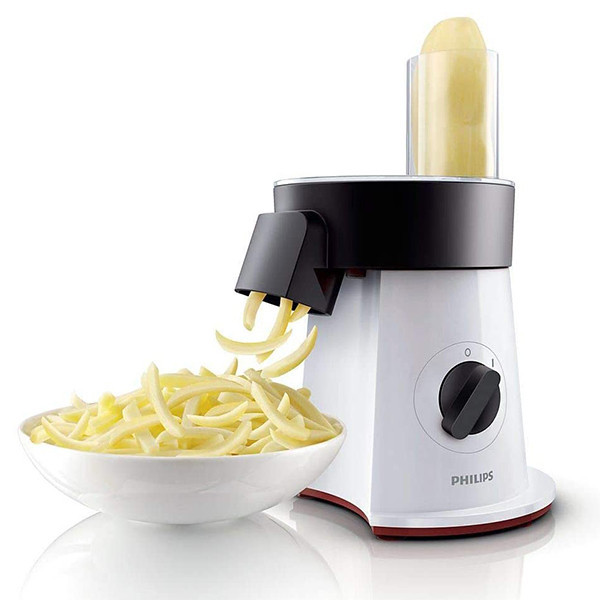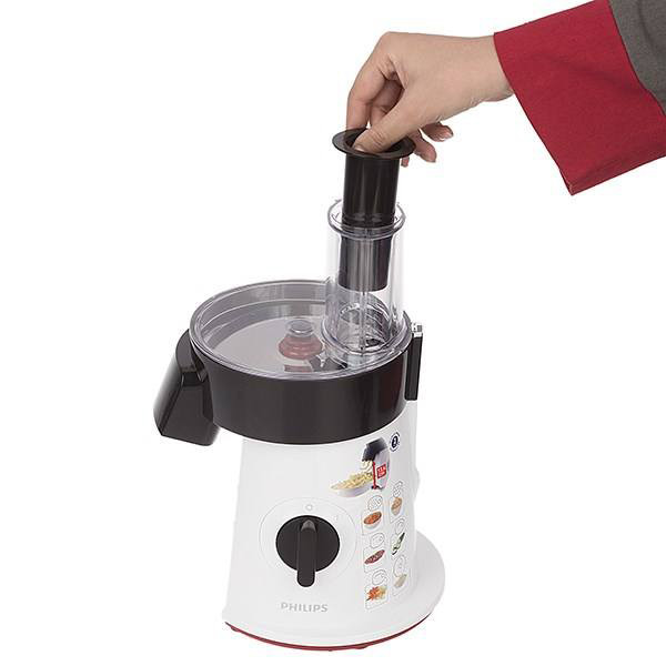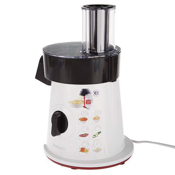 دارای 6 دیسک استیل ضد زنگ برای ورقه کردن ،رنده کردن و خلال کردن سبزیجات، دارای دهانه عریض، قابل استفاده برای انواع سبزیجات ، پنیر، سیب زمینی و گوشت