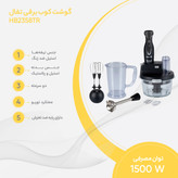 متاسفانه این کالا در حال حاضر موجود نیست. میتوانید از طریق لیست بالای صفحه، از محصولات مشابه این کالا دیدن نمایید.گوشت کوب برقی تفال مدل Tefal HB2358TR دارای 4 تیغه دو طرفه و میلههای همزن و رندهها از جنس استیل ضد زنگ بوده و به لطف لبههای صاف و دندانه دار در داخل تیغهها دارای عملکرد اختلاط عالی است. گوشت کوب برقی تفال مدل Tefal HB2358TR محصولی از شرکت تفال با پنج عملکرد خرد کن،همزن،یخ شکن،رنده و گوشت کوب است. جنس بدنه دستگاه از پلاستیک با کیفیت عالی و جنس ظرف خردکن از شیشه است. فناوری انحصاری Powelix همراه با موتور قدرتمند 1500 واتی با عملکرد استثنائی و نتایج فوق العاده ترکیبی صاف و همگن از مواد غذایی را حتی با سخت ترین مواد در هر بار استفاده از گوشت کوب برقی تفال مدل Tefal HB2358TR به شما ارائه میدهد. دستگاه دو سرعته است. میتوان سرعت دستگاه را بدون نیاز به توقف کار از طریق کنترل کنندههای روی دسته به راحتی تغییر داد.