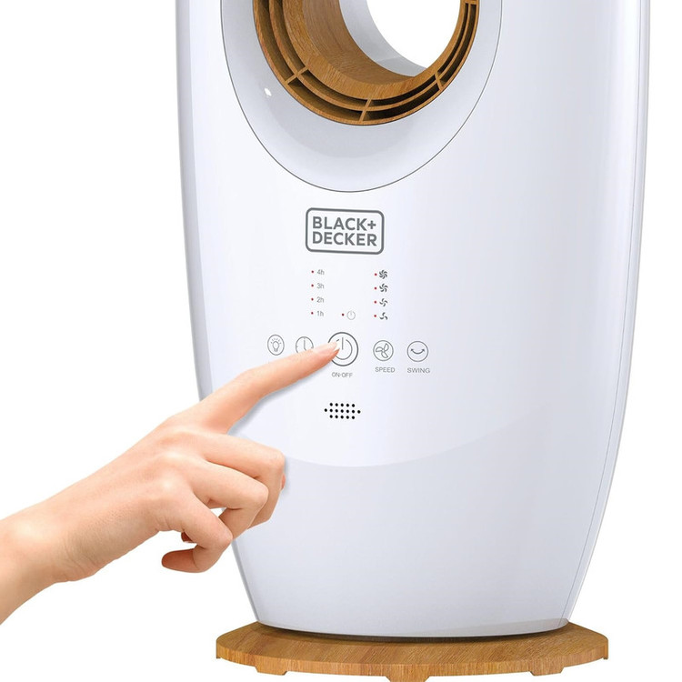 پنکه ایستاده بلک اند دکر مدل FBL85 به صورت بدون پره با قطر 85 سانتیمتر ارائه شده و از ویژگی های خنک کننده قدرتمند، طراحی شیک بهره می برد که برای هر فضایی آرامبخش می باشد. می توان متناسب با نیاز و هر محیطی سرعت را در 4 سطح تنظیم کرد. بلک اند دکر برای این مدل ریموت کنترل نیز در نظر گرفته تا عملکرد استفاده از آن افزایش یابد. همچنین پنکه Black and Decker FBL85 از طریق پنل کنترلی و نمایشگر دیجیتال LED که دارد، برای سرعت های مختلف قابل تنظیم می باشد.