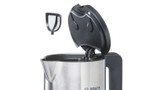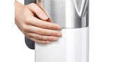 کتری برقی مدل «TWK8611P» دستگاهی باکیفیت از شرکت آلمانی «بوش» است. این کتری از طراحی متفاوت و مدرنی برخوردار است. قابلیت تنظیم دما از ویژگیهای قابل توجه و پرکاربرد این دستگاه است. شما میتوانید دمای این کتری را در بازهی 70 تا 100 درجهی سانتیگراد تنظیم کنید. به این ترتیب تهیهی دمنوشهای مختلف به آسانی ممکن شده است. روی پایه این مدل چهار دکمه قرار دارد که به وسیله آنها قادر خواهید بود علاوه بر روشن و خاموش کردن دستگاه، درجه حرارت آب را به میزان دلخواه تعیین کنید. علاوه بر این یک دکمه دیگر نیز جهت گرم نگاهداشتن آب داخل کتری قرار دارد که به نوبهی خود کاربردی است. برای حفظ کیفیت آب و جلوگیری از ورود رسوبات به چای یا دمنوش، صافی کوچک مشبکی در قسمت خروجی آب در نظر گرفته شده است. گنجایش این کتری به 1.5 لیتر میرسد و از نشانگر وضعیت روشن و خاموش و نشانگر میزان آب بهره میبرد.